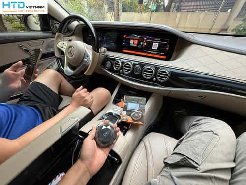 Kỹ thuật viên chỉ cần cắm box vào cổng USB (hoặc Type-C) của Maybach S450, kết nối wifi là sử dụng ngay.